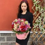 Альстромерия – 25 шт.Оазис флористический – 1 шт.шляпная коробка l – 1 шт.