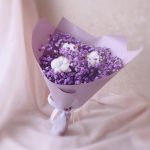 «Лавандовое созвездие» Букет из розы, гвоздики, статица и хлопка