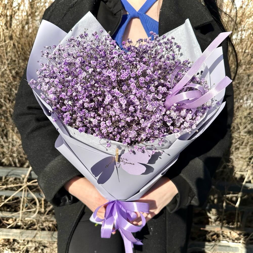 Фиолетовый букет из гипсофилы «Лавандовые Сны»