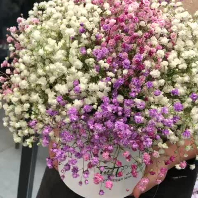 Шляпная коробка – 1 шт.Оазис флористический – 1 шт.гипсофила радужная – 12 шт.
