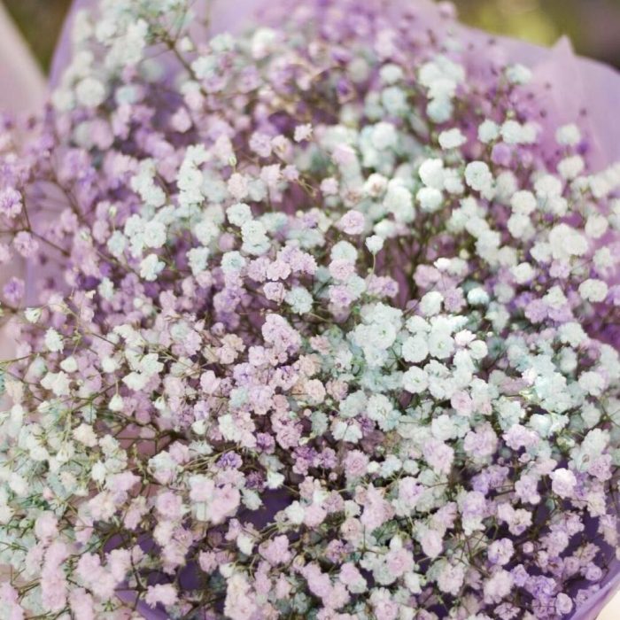 «Лавандовое созвездие» Букет из розы, гвоздики, статица и хлопка