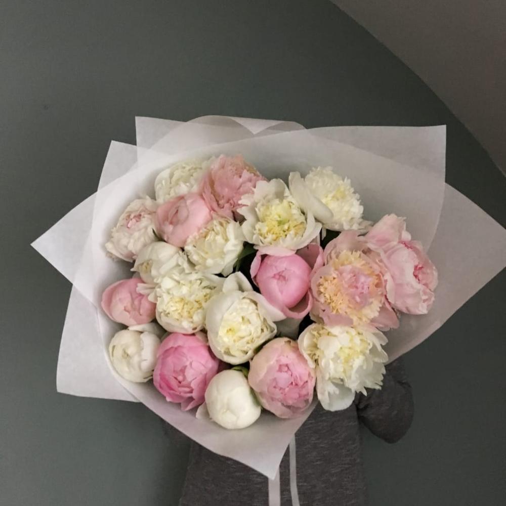 Пион – 19 шт.Лента атласная – 2 шт.Упаковка дизайнерская – 2 шт.
