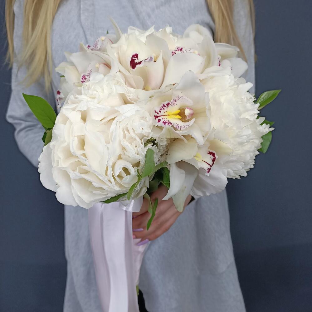 Пахнущий свадебный букет из пушистых пионов и элегантных орхидей ️