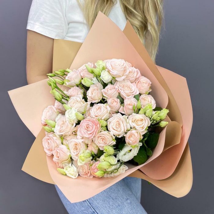 Букет пионовидных роз нежного, кремового оттенка бережно упакованные в крафт упаковку. Пионовидные розы считаются символом романтики и верности. Их полные бутоны отображают множество ярких чувств и любви. Благодаря своей редкой расцветке, превосходным эстетическим данным и аромату их относят к самым красивым сортам.