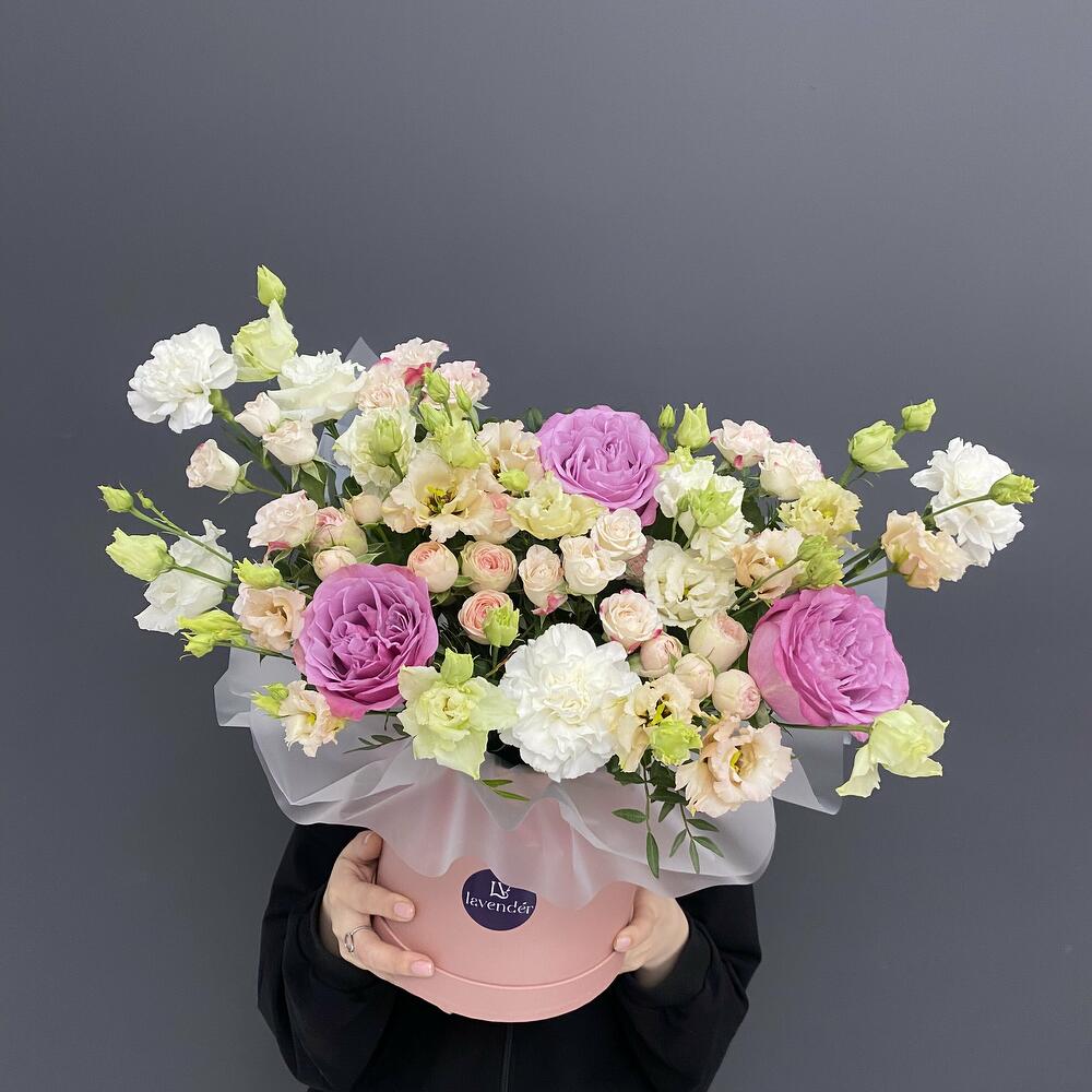 Альстромерии, Гортензии, Кустовые розы, Лизиантусы, Розы, Хризантемы