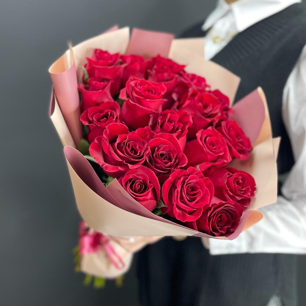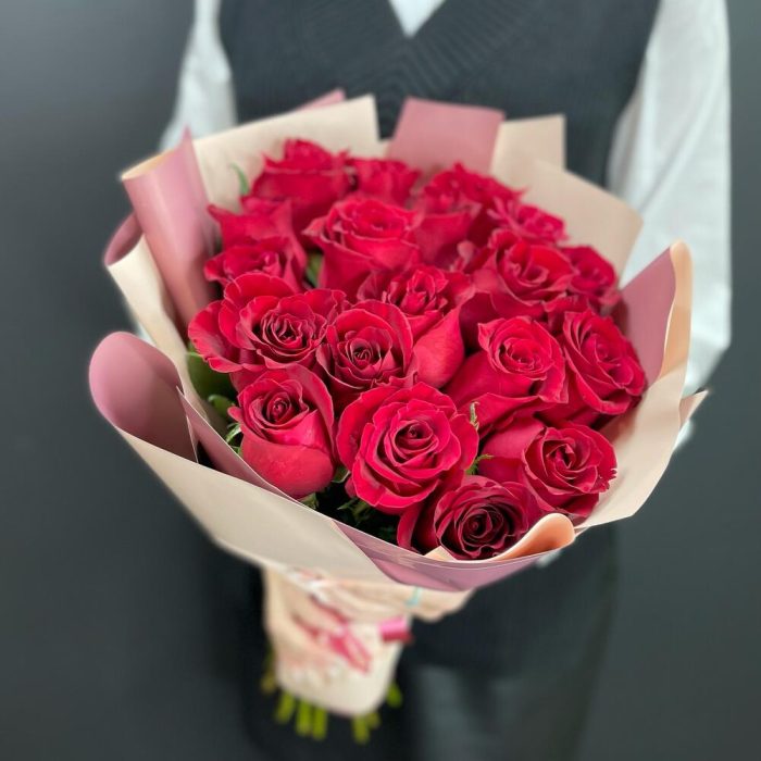 Роза эквадор 55 см – 19 шт.Дизайнерская упаковка – 3 шт.