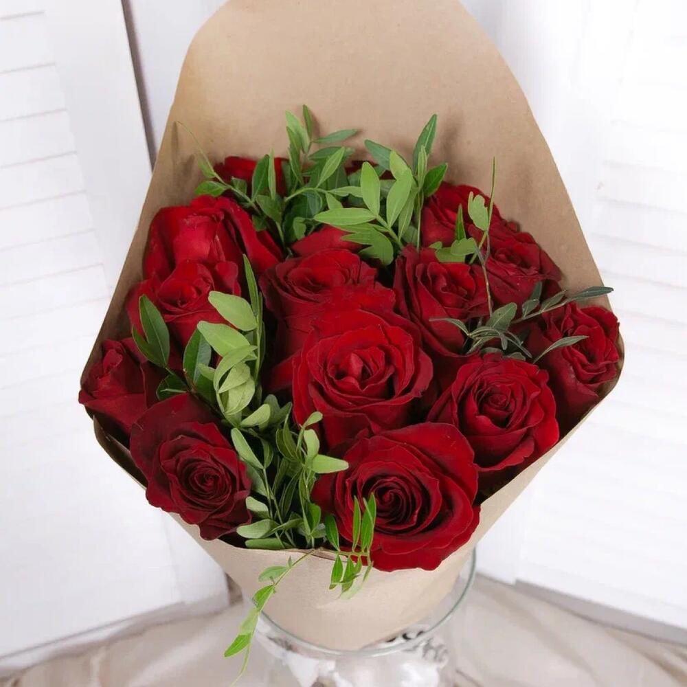 роза explorer 50 см – 15 шт.Фисташка – 2 шт.бумага крафт – 1 шт.