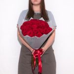 Лента атласная – 2 шт.Красная роза – 35 шт.Дизайнерская упаковка – 2 шт.инструкция по уходу за цветами – 1 шт.любовь флориста (бесплатно) – 1 шт.подкормка для цветов chryzal – 1 шт.