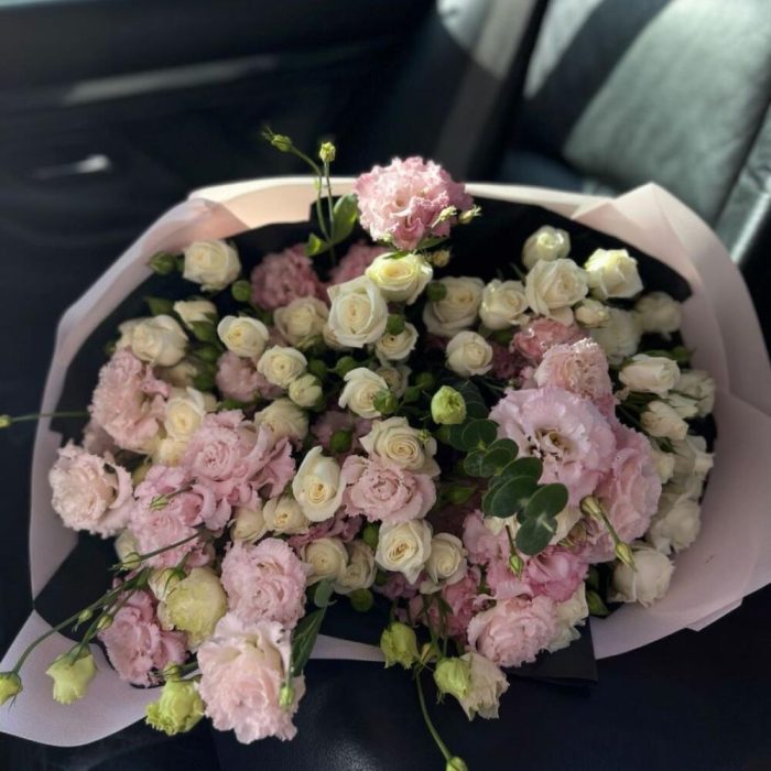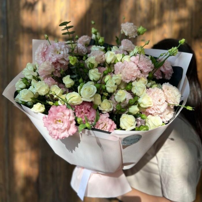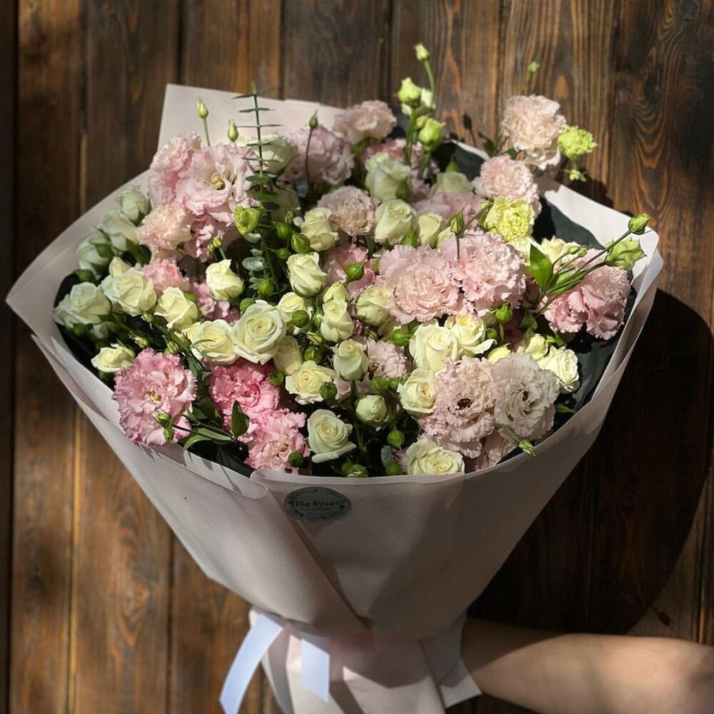 Гвоздики, Лизиантусы, Розы, Тюльпаны