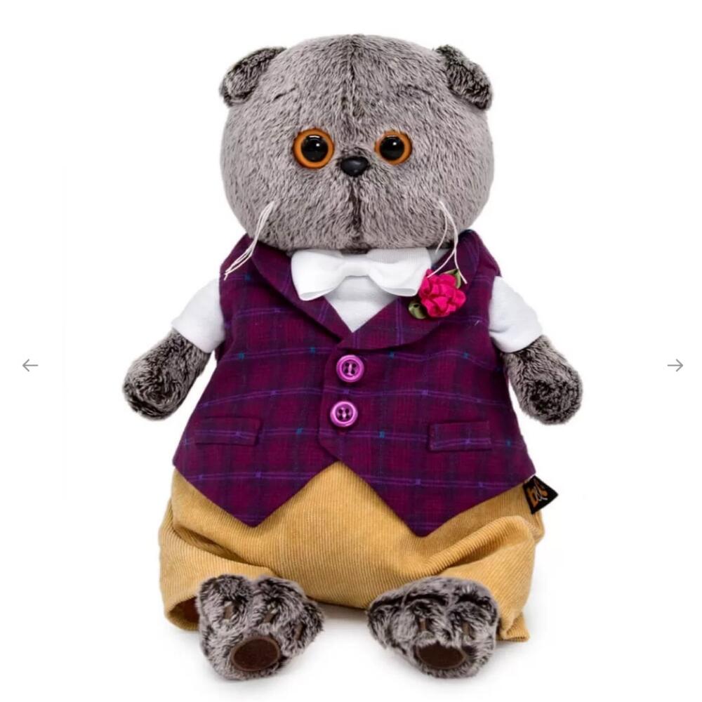 Мягкая игрушка в коробке Кот Басик в бордовом жилете с розочкой 19см (сидя)