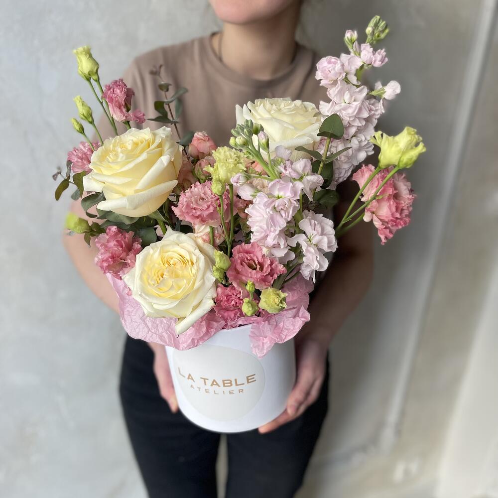Нежная композиция в шляпной коробке