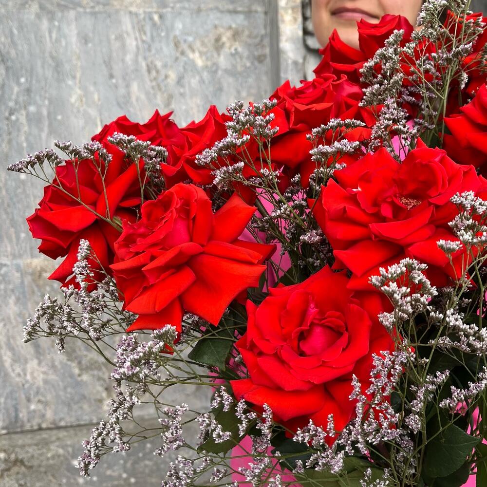 Лимониум – 3 шт.Лента атласная – 2 шт.французская премиум роза нина – 11 шт.