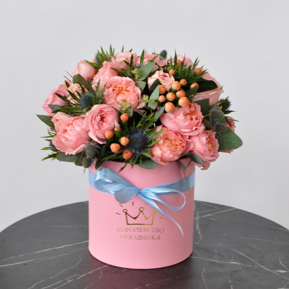 Пионовидные розы в окружении ягод гиперикума, голубые колючки делают этот букет просто волшебным.Как быстро проносится прекрасное лето❤️ радуйте своих любимых яркими летними букетам.Красочная композиция ,прекрасно подойдёт в подарок учителю Такую композицию можно подарить по любому поводу, она станет прекрасным украшением стола, интерьера, красива со всех сторон. Подойдёт в подарок на новоселье, день рождения, юбилей и просто порадовать дорогого человека