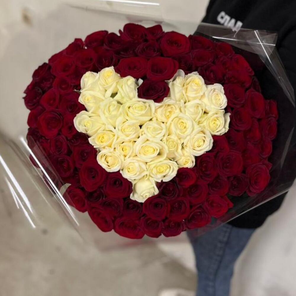 Розы 101 штука 70 см красивое сердце