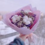 «Лавандовое созвездие» Букет из розы, гвоздики, статица и хлопка